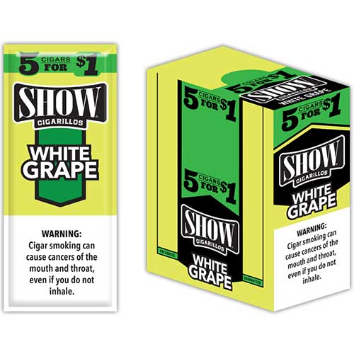 With all the basic cigar flavors in the market, it is no doubt that you would be searching for something new. Well here it is, Show Cigars newest flavor, White Grape! These popular cigars are created from a blend of creamy and rich tobacco leaf that is infused with the tangy deliciousness of White Grape. This isn’t like your usual fruity flavors, but it is a class apart! These cigars are full-bodied, smooth, rich and they do give you the hit you are looking for. Go for our discounted rates and get these in packs of 15 which includes 2 cigars each in a tightly sealed foil pouch.